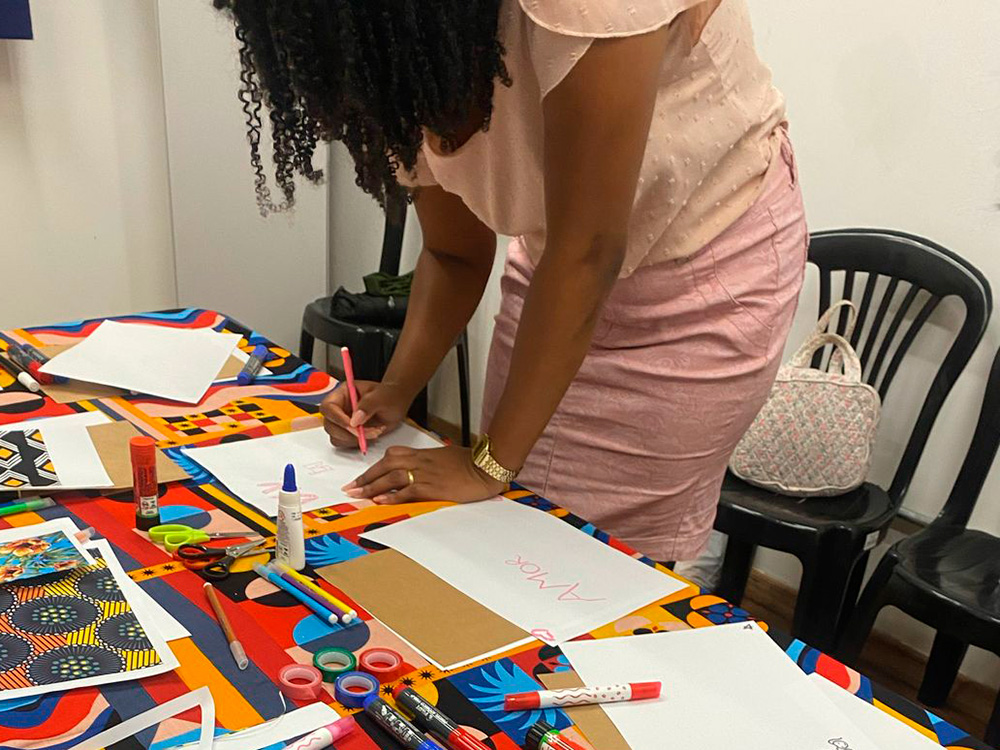 Na última oficina presencial, foi a hora de continuar essa produção, revisar, selecionar os lambe-lambes e começar a planejar os primeiros passos da Exposição.